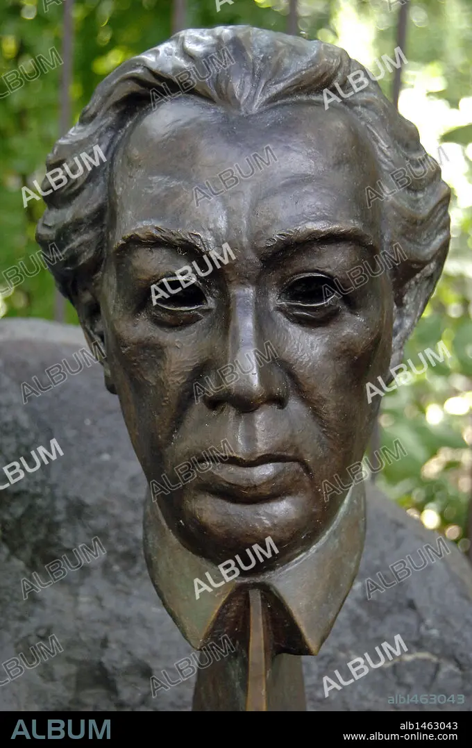 EGON WEINER (1906-1987). AMERICAN SCULPTOR.. Frank Lloyd Wright (1867-1959). American architect. Monument to Wright, by sculptor Egon Weiner (1906-1987), 1981. Bust detail. Austin Gardens. Oak Park (near Chicago). State of Illinois. United States.