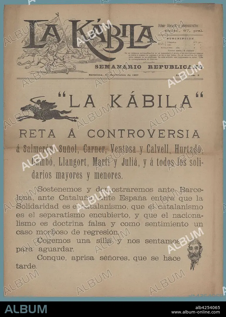Cover of the republican weekly La Kábila, published in Barcelona, September 1907