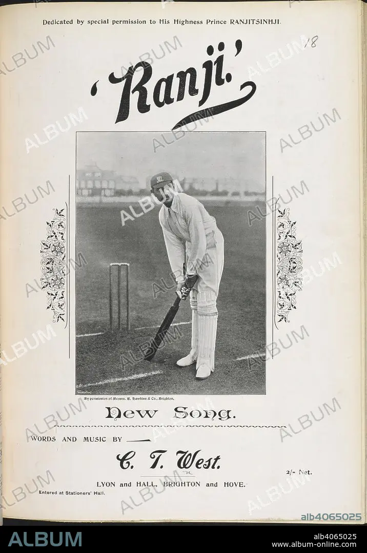 Caption: Prince Ranjitsinhji. Full name: H.H. Jam Saheb Shri Sir Ranjitsinhji Vibhaji of Nawanagar. Ranjitsinhji GCSI GBE (10 September 1872 – 2 April 1933), often known as Ranji, was the ruler of the Indian princely state of Nawanagar from 1907 to 1933, as Maharaja Jam Saheb, and a noted Test cricketer who played for the English cricket team. He also played first-class cricket for Cambridge University, and county cricket for Sussex. Ranji ... Song, words and music by C. T. West. Brighton and Hove : Lyon and Hall, [1896]. Source: H.1798.oo.(18).
