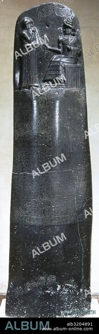 Mesopotamia. Code of Hammurabi. Babylonian law code. 1754 BC. Akkadian language. Cuneiform script. Louvre Museum. Paris. France.