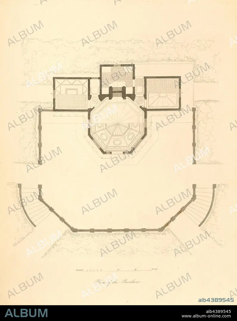 Plan of the Pavilion, Floor plan of the summer house in the garden of Buckingham Palace, pl., 1, according to p. 11, Ludwig Gruner; Anna Jameson: The decorations of the garden-pavilion in the grounds of Buckingham Palace. London: publ. by John Murray; Longman & Co.; P. & D. Colnaghi; F. G. Moon; and L. Gruner, MDCCCXLVI.