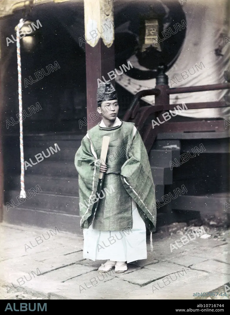 [ 1890s Japan - Japanese Shinto Priest ] A Japanese shinto priest (Kannushi). 19th century vintage albumen photograph.