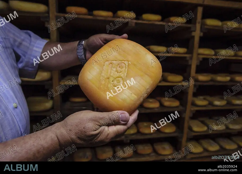 Automatic translation: Artisanal manufacture of Binigarba cheese - Artisan Mahon denomination of origin - Binigarba estate, Ciutadella, Menorca, Balearic Islands, Spain, Europe