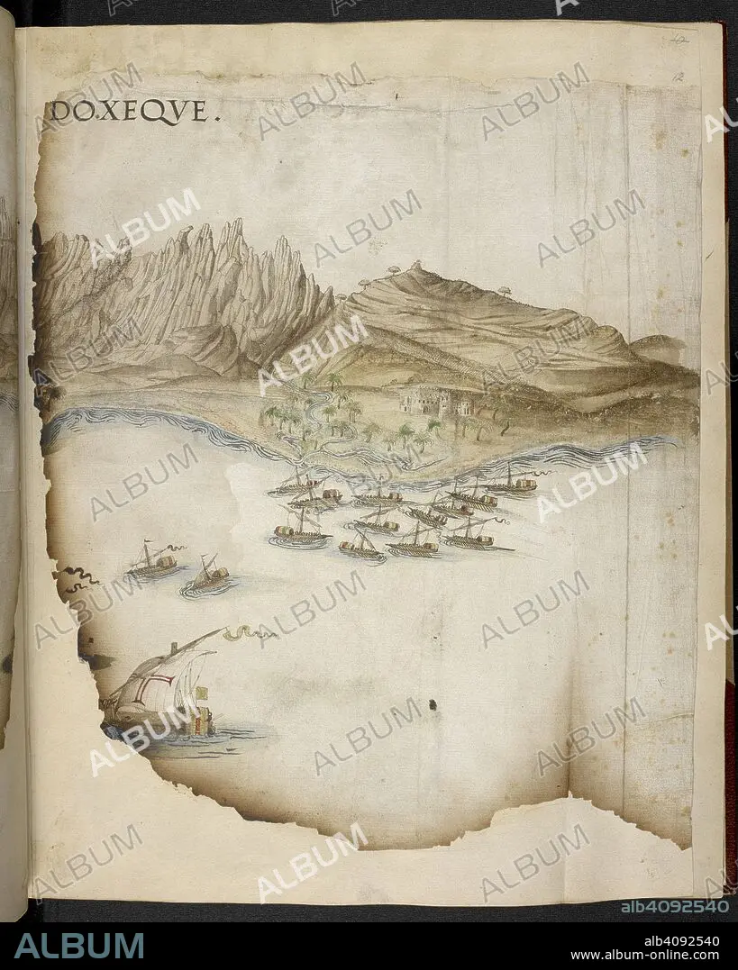 Caption: Right view of Aguada, Goa. Itinerary from India to Suez, 1541. Portugal; 1542. Source: Cotton Tiberius D. IX, f.12.