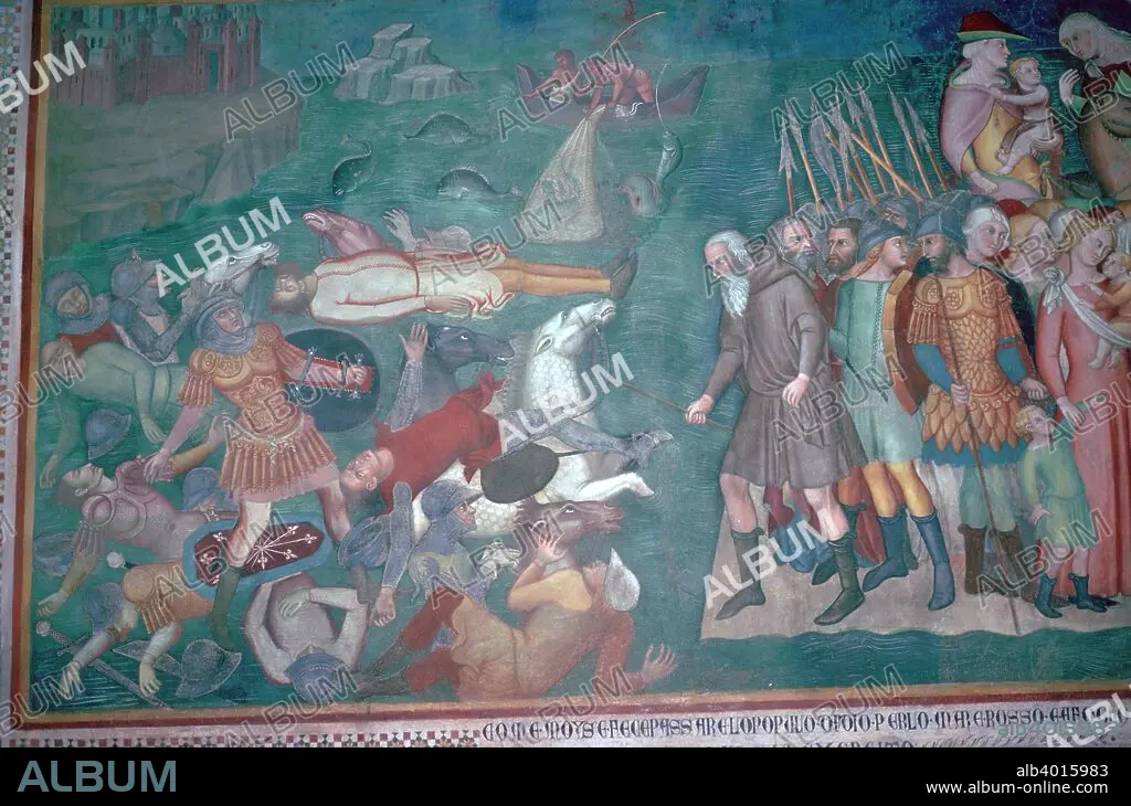 Caption: Fresco of the Israelites crossing the Red Sea from San Gimignano in Italy, 14th century.