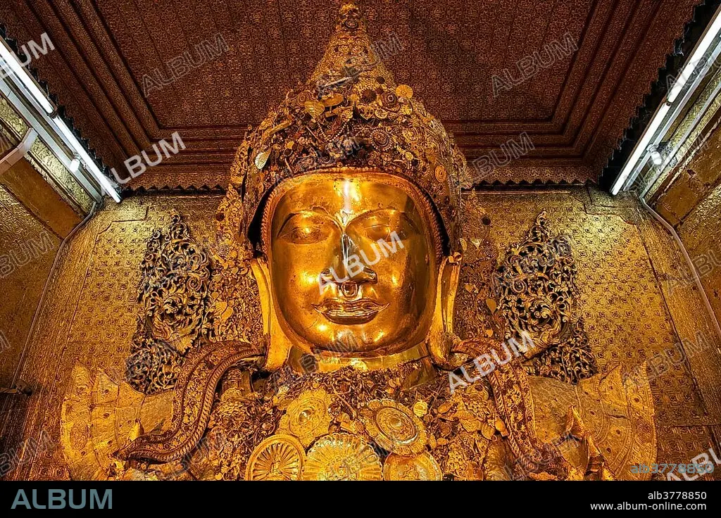 Mahamuni Buddha statue, Mahamuni Pagoda, Mandalay, Division Mandalay, Myanmar, Asia.