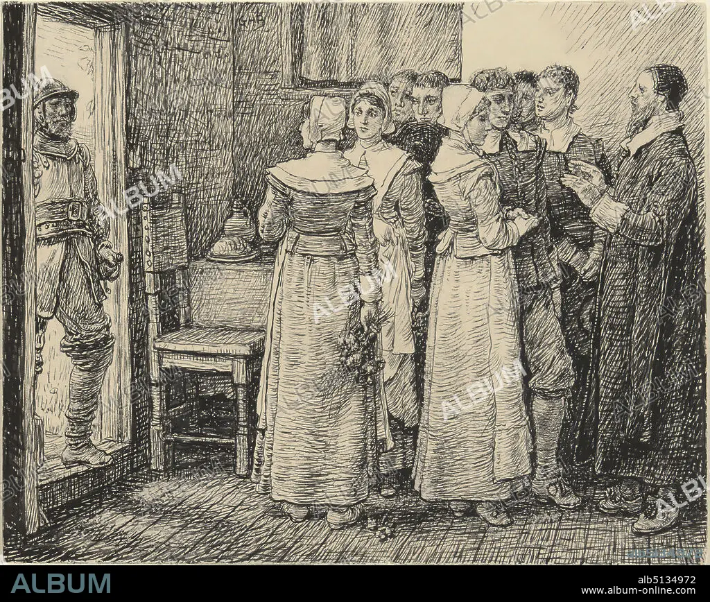 Artist: George Henry Boughton, American, 18331905, The Puritan Wedding Interrupted, Pen and ink drawing, 17.8 × 19.7 cm (7 × 7 3/4 in.), Made in United States, American, 19th century, Works on Paper - Drawings and Watercolors.