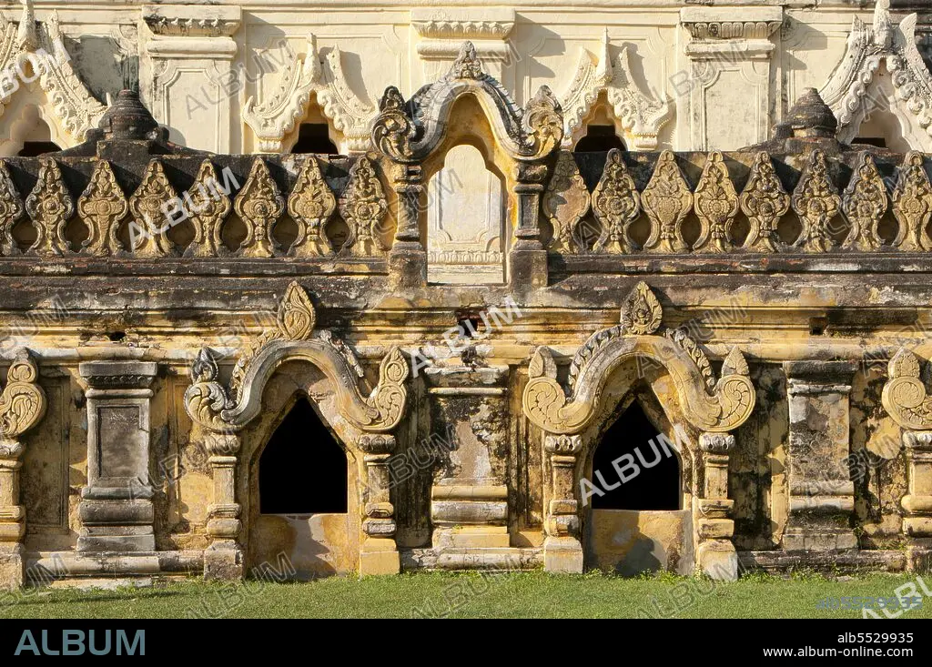 The Maha Aung Mye Bonzan Monastery was built in 1822 by Nanmadaw Me Nu, the first queen of King Bagyidaw (1784 - 1846). Inwa was the capital of Burma for nearly 360 years, on five separate occasions, from 1365 to 1842. So identified as the seat of power in Burma that Inwa (as the Kingdom of Ava, or the Court of Ava) was the name by which Burma was known to Europeans down to the 19th century.