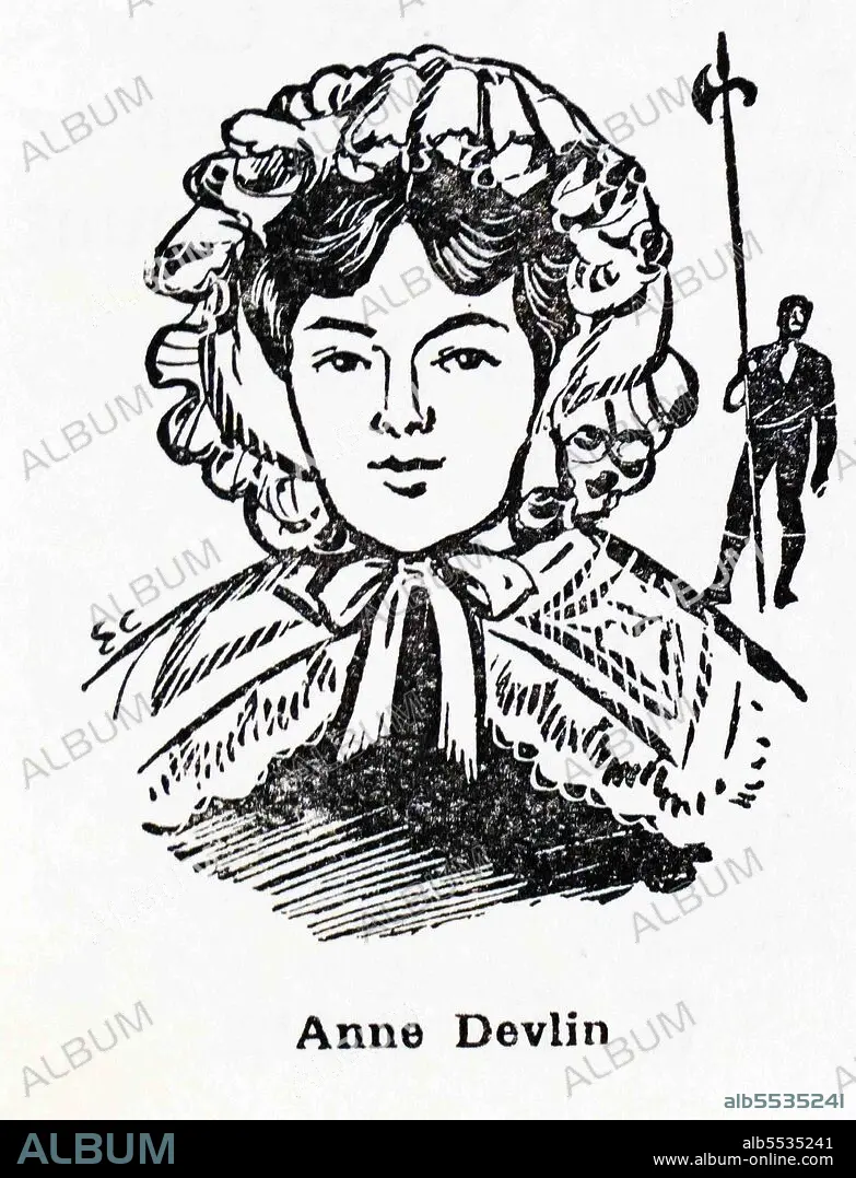 Anne Devlin (1780 – 1 September 1851) was an Irish republican famous for her involvement with the United Irishmen, and enduring terrible conditions, as well as torture, when imprisoned by the British authorities. She acted in the nominal unpaid role of housekeeper but was really a co-conspirator of Robert Emmet and was also a cousin of two leading United Irish rebels, Michael Dwyer and Arthur Devlin.