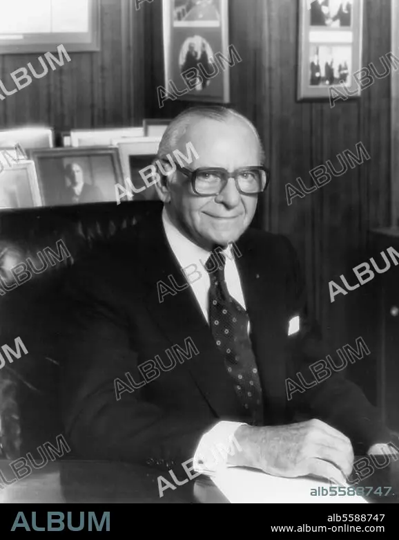 Caption: Hammer, Armand US Americ. industrialist and art collector of Bulgarian descent. 21.5.1898 New York - 10.12.1990 Los Angeles. Armand Hammer at writing desk. Photo, 1980.