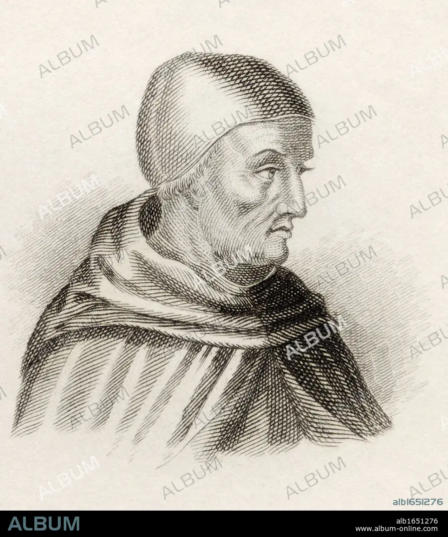 Caption: Saint Albertus Magnus, born between 1193 and 1206 died 1280. Also known as Saint Albert the Great, Albert of Cologne, Albertus Teutonicus, Frater Albertus de Colonia, Albertus Ratisbonensis, or Albertus Grotus. German philosopher and theologian, Dominican friar and bishop. From the book Crabbes Historical Dictionary published 1825.