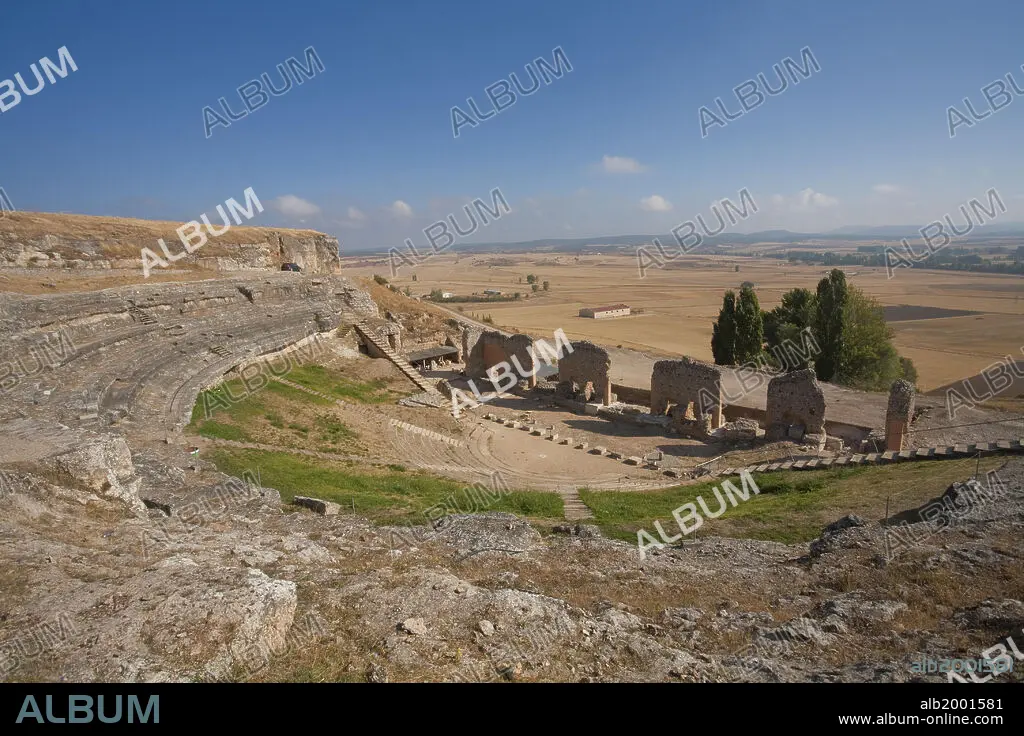 Caption: Colonia Clunia Sulpicia was the administrative capital of the Roman province of Northern Iberia. The theater is thought to have held around 9,000 spectators, making it the largest theater of its kind in Spain and Portugal. The upper seats were carved out of the bedrock, while stone, brick and mortar filled the rest of the theater. Archaeologists believe that in the 2nd century the theater was remodeled into a semi-amphitheater to accommodate gladiatorial shows.