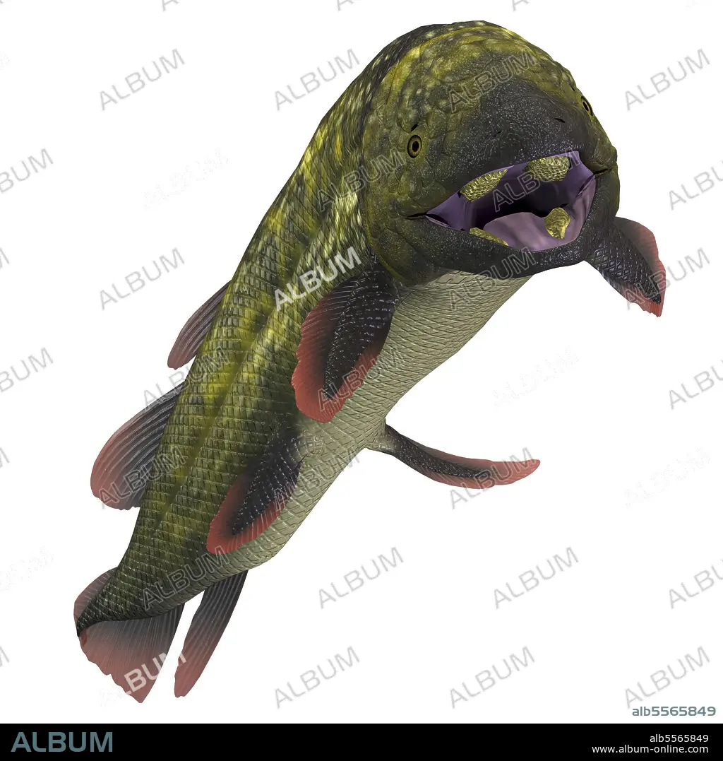 Caption: Dipterus prehistoric fish. Dipterus was a freshwater fish species that lived in swamps and bayous of Europe and North America during the Devonian and Carboniferous Periods .