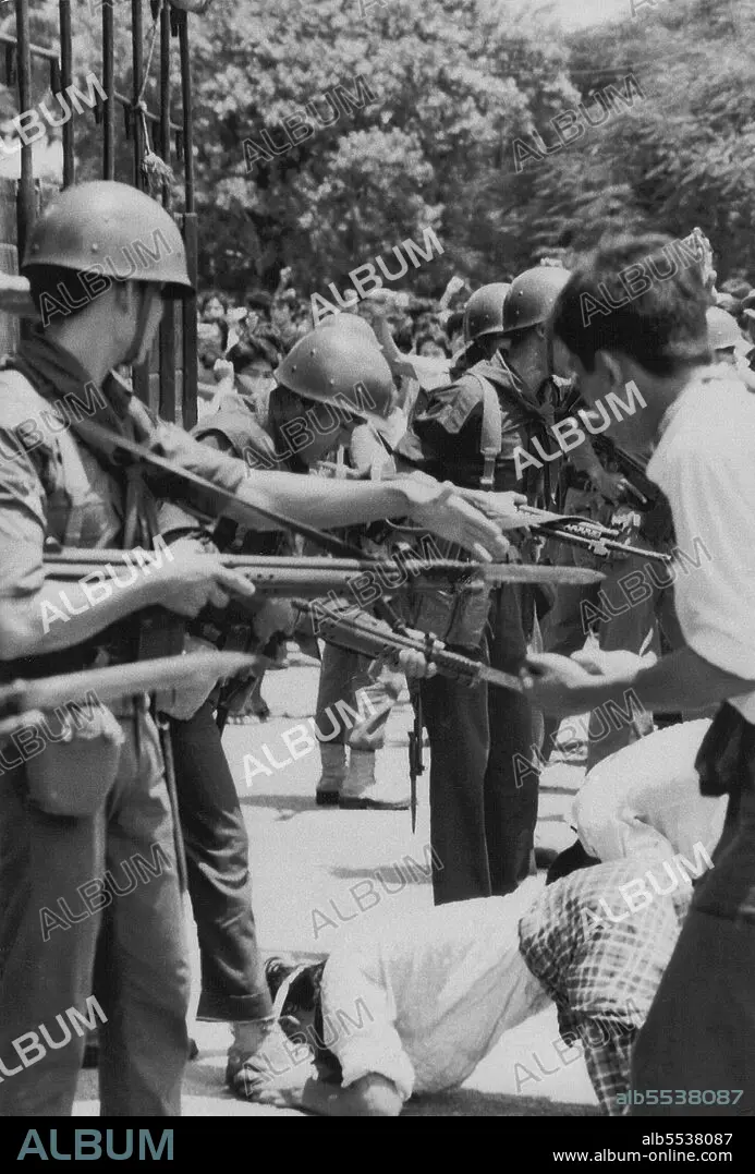 Title: Burma / Myanmar: Students make an emotional appeal to soldiers, Rangoon,8888 Uprising (August 1988).