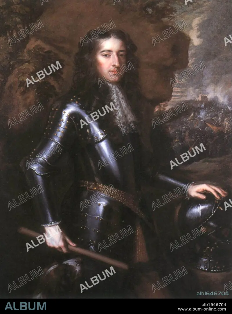 Caption: William III (1650-1702) from 1672 Stadtholder William III of Orange, from 1689 William III of England and Ireland and William II of Scotland. Portrait after original of 1677 by Peter Lely. Armour Helmet War Battle Protestant
