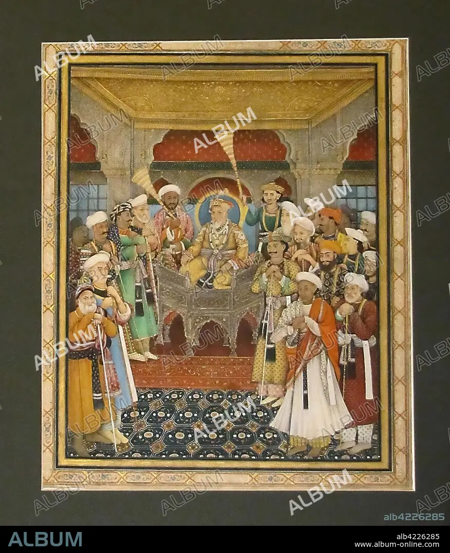 Caption: 'Darbar of the Mughal Emperor Akbar II'. India, Delhi, 1820-1830s. Dimensions: 36,7x33,5 cm.