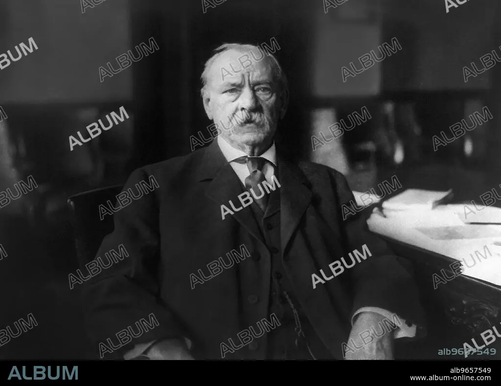 Caption: Grover Cleveland (1837-1908), 22nd and 24th President of the United States 188589 and 189397, Head and Shoulders Portrait at Home, Princeton, New Jersey, USA, Photograph by New York Herald Company, 1908