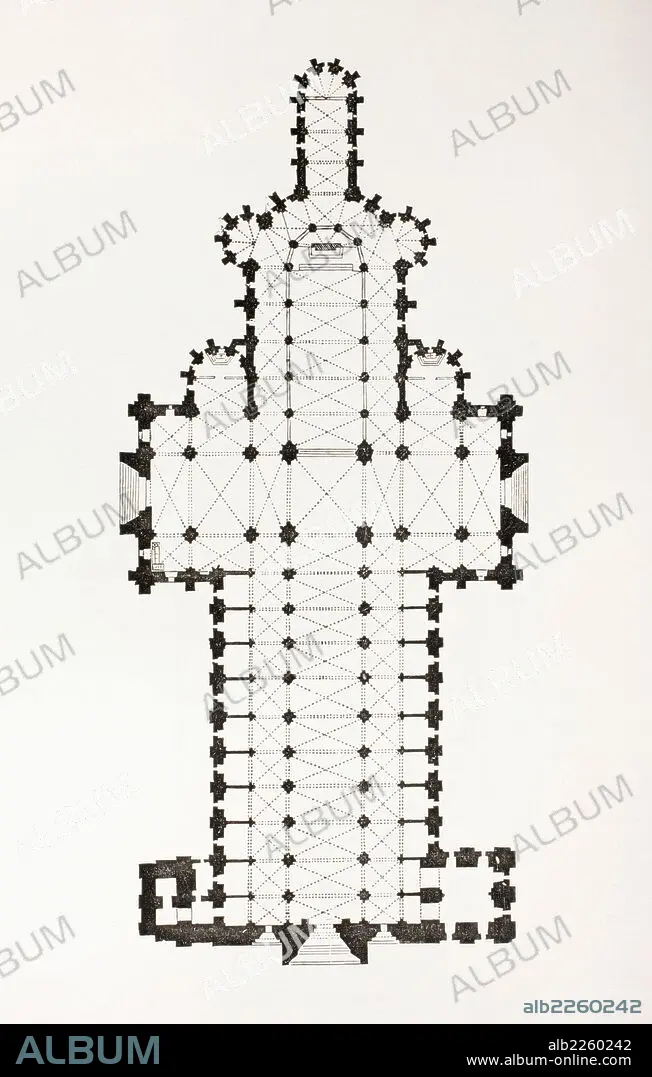 Floor Plan Of The 13Th Century Ogive Style Notre Dame Cathedral In Rouen.