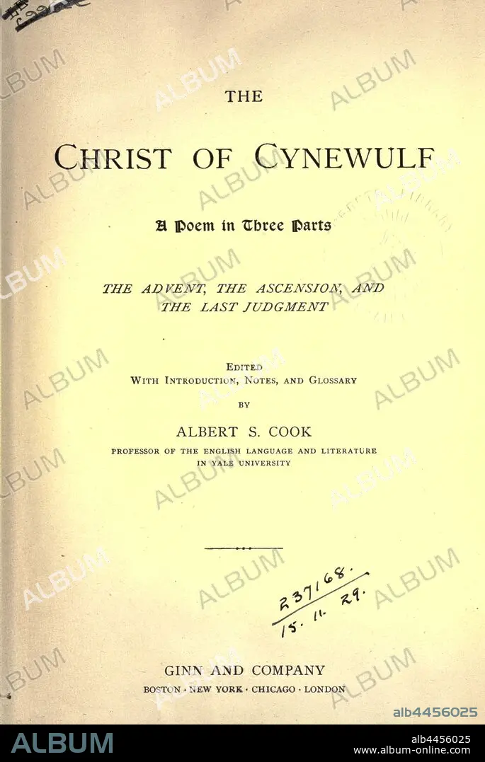 Caption: The Christ; a poem in three parts: The advent, The ascension, and The judgment. Edited, with introd., notes, and glossary by Albert S. Cook : Cynewulf