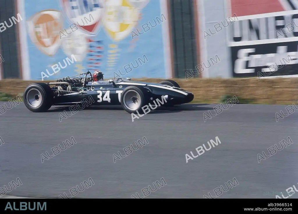 Jo Siffert in Cooper Maserati, Belgian Grand Prix, Spa Francorchamps, 1967. Swiss driver Siffert finished this race in 7th place. Siffert, who won two Grands Prix during his Formula 1 career, was more successful as a competitor in sports cars, winning several races between 1969 and 1971 driving for Porsche. He was killed when his BRM crashed in the Victory Race at Brands Hatch in 1971.