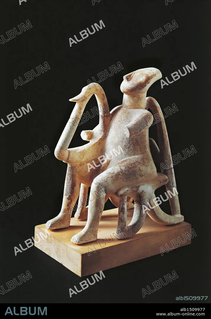 Caption: Cycladic civilization, 3rd millennium b.C. Marble statue known as the Harpist or Lyre player.