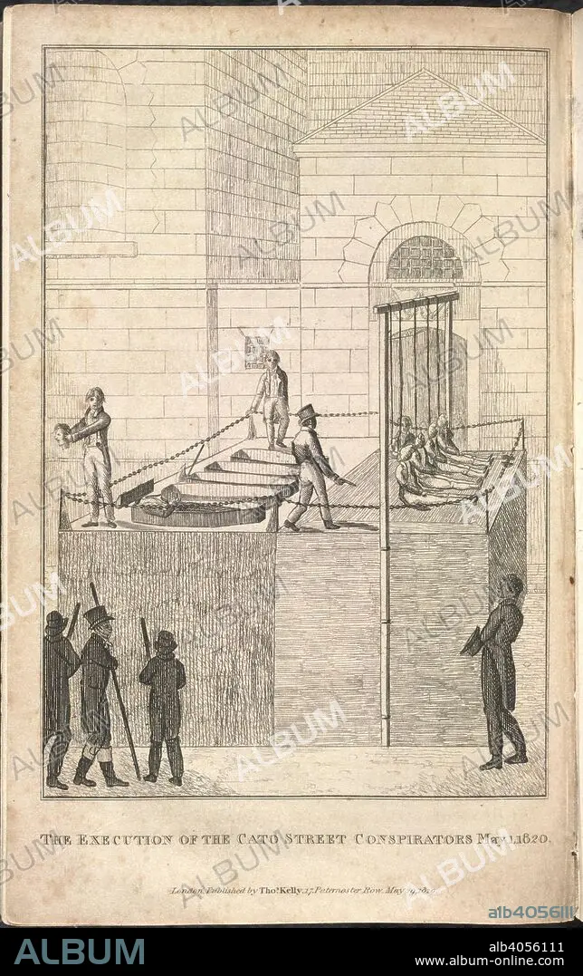 Caption: Execution scene. An authentic History of the Cato-Street Conspiracy. Thomas Kelly: London, 1820. The execution of the Cato Street conspirators May 1, 1820'. Arthur Thistlewood and four others were convicted of high treason and hanged. They were also decapitated. Image taken from An authentic History of the Cato-Street Conspiracy; with the trials at large of the conspirators for high treason and murder; a description of their weapons and combustible machines, and every particular connected with the horrid plot. With portraits of all the conspirators and other engravings. Originally published/produced in Thomas Kelly: London, 1820. . Source: 6495.aaa.42, opposite 385. Language: English.