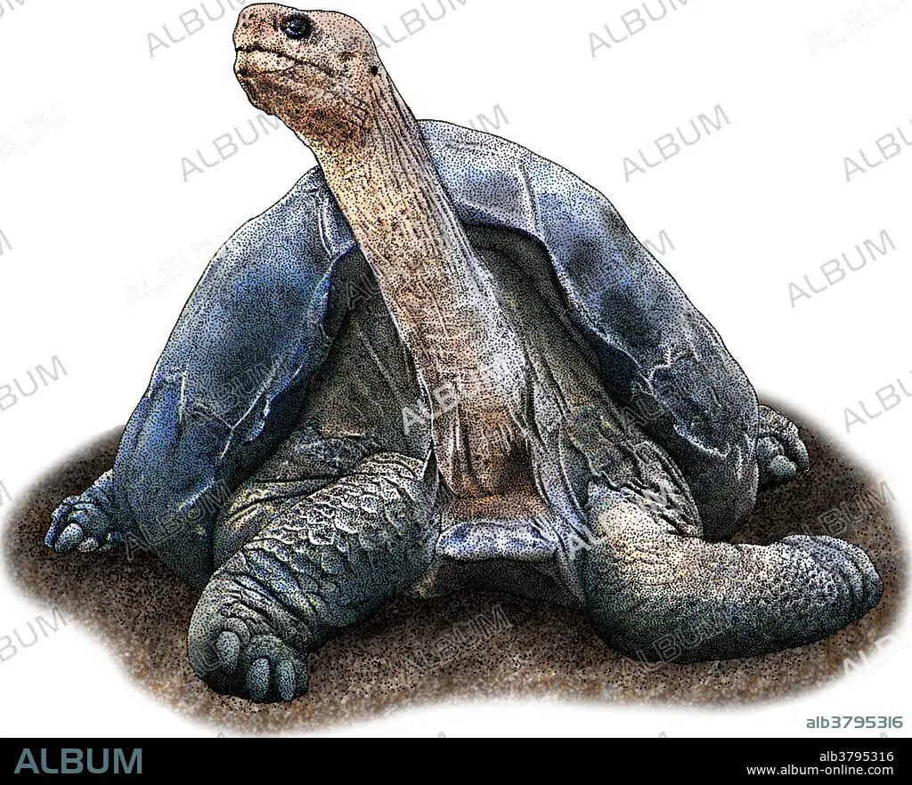 Caption: Illustration of a Pinta Island Galapagos Tortoise (Chelonoidis nigra abingdonii).