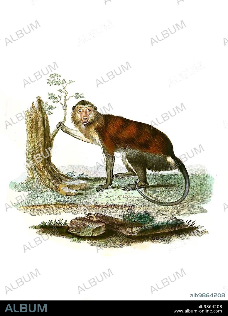 Caption: Mammals, Simia mona, Mona monkey (Cercopithecus mona), a primate species of the genus guenon, Historical, digitally restored reproduction of an original from 1860