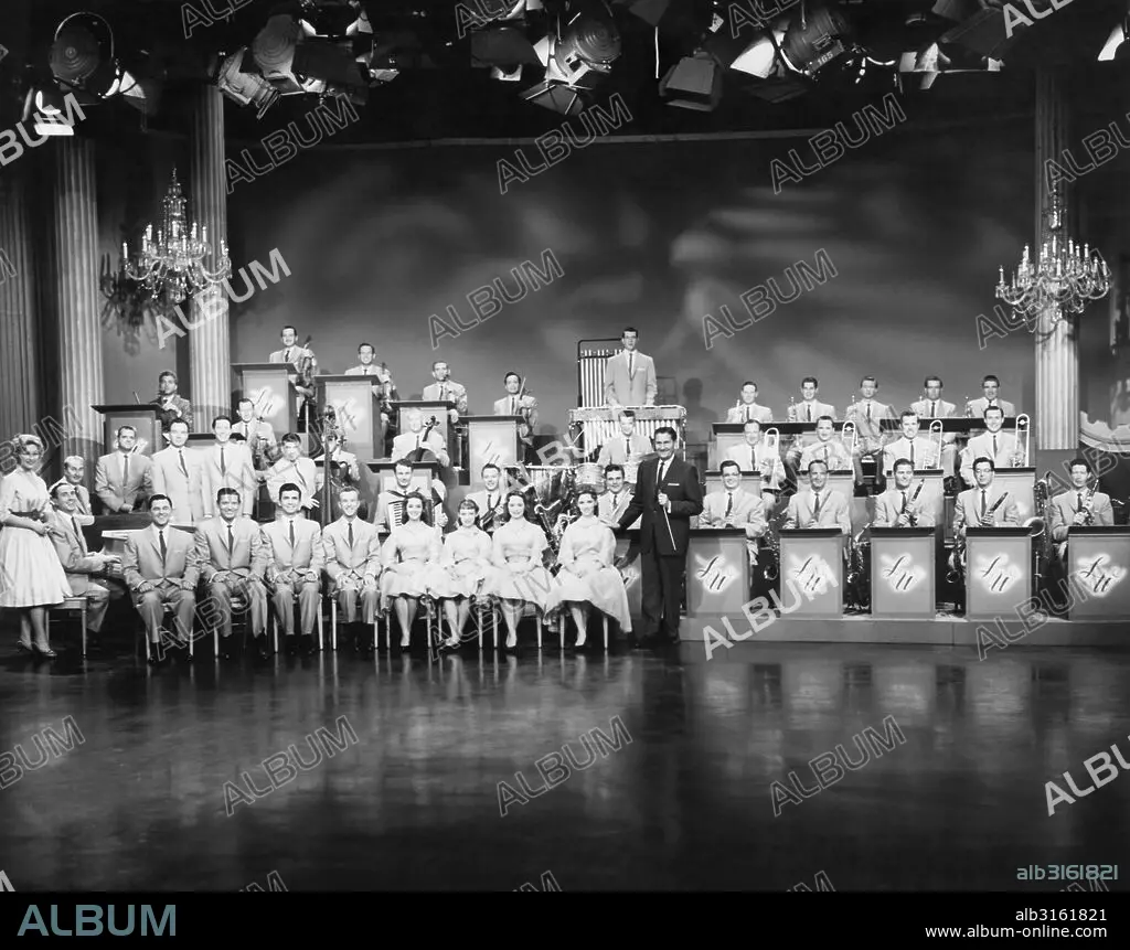 Los Angeles, California: c. 1960. The Lawrence Welk Show with his orchestra and the Lennon Sisters.