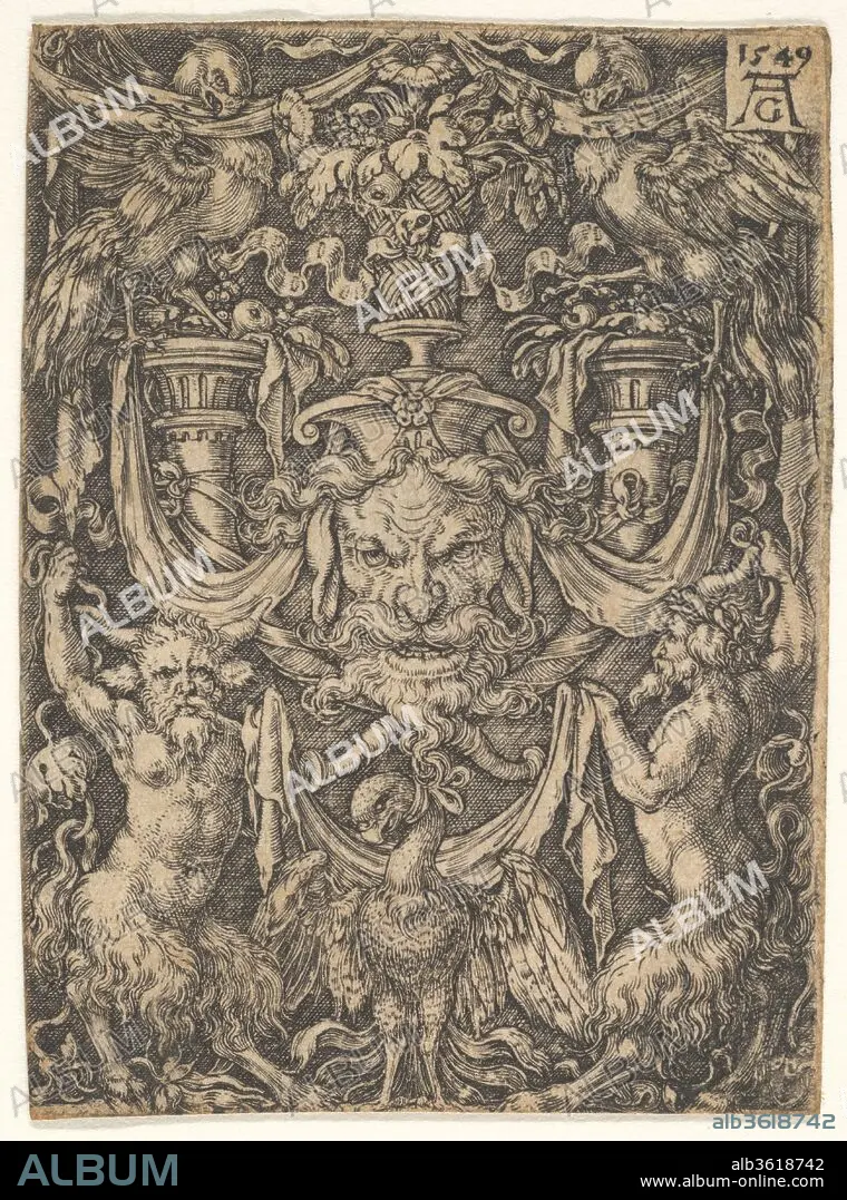 Caption: Ornamental Design with a Mask and an Eagle between Two Fauns below. Artist: Heinrich Aldegrever (German, Paderborn ca. 1502-1555/1561 Soest). Dimensions: sheet: 2 5/8 x 1 15/16 in. (6.7 x 4.9 cm). Date: 1549.