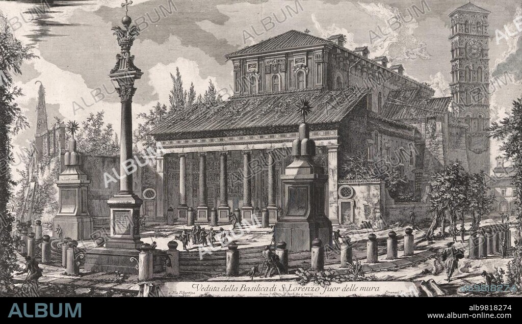 Caption: Ancient Rome; Church of Saint Paul Outside the Walls; San Paolo fuori le mura; one of the papal basilicas of Rome; 1770; Italy; Historic; digitally restored reproduction from an original of the period; Europe