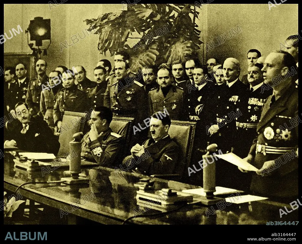 Caption: A statement from the Reich Governament following the signing of the Tripartite Pact (Berlin Pact) First row left to right: Ambassador Kurusu, Count Ciano and Adolf Hitler. Dated 27th September 1940.