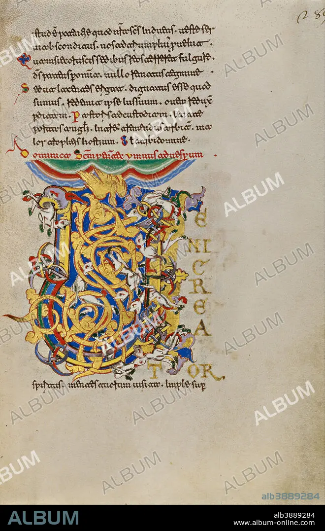 Caption: Initial V: The Descent of the Holy Spirit. Date/Period: 1153. Folio. Tempera colors, gold leaf, gold paint, and ink on parchment. Height: 192 mm (7.55 in); Width: 132 mm (5.19 in).