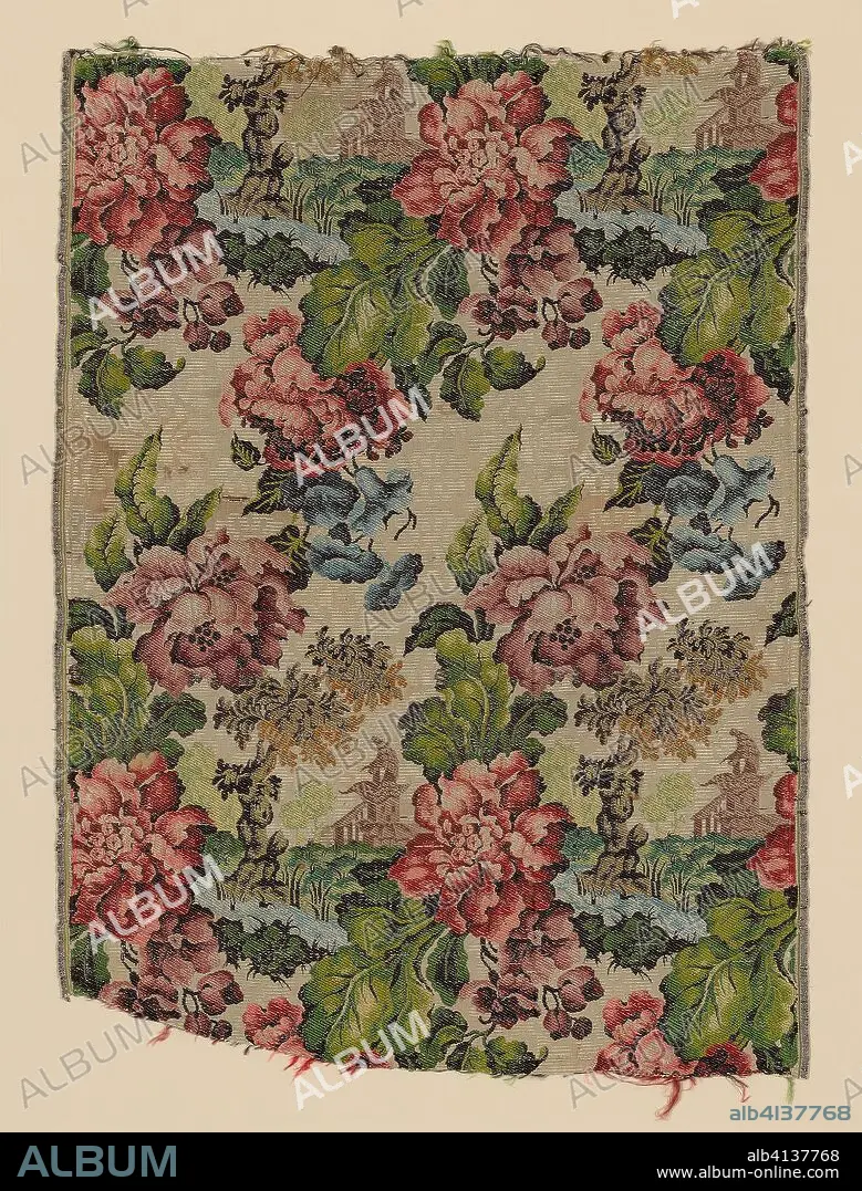 Repeat: 50.2 x 25.8 cm (19 3/4 x 10 1/8 in.). Silk, plain weave with supplementary patterning warps and supplementary patterning and brocading wefts bound in weft-float faced 1:3 twill interlacings. Origin: Lyon.