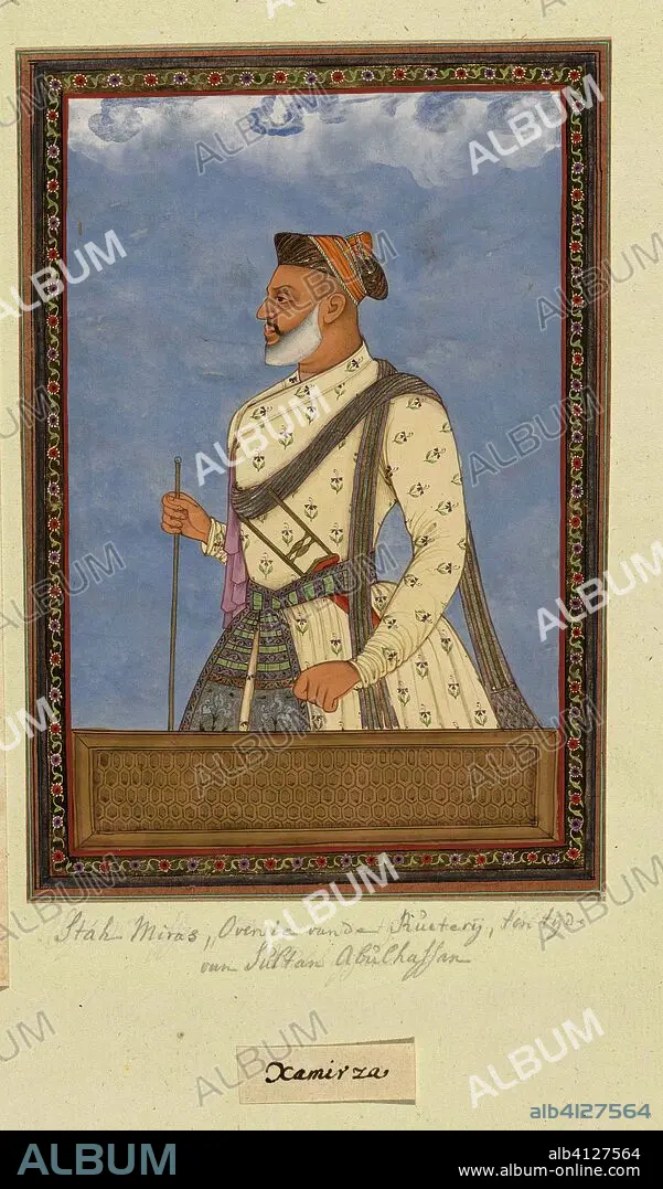 Caption: Portrait of Shah Mirza; at the time of Sultan Abul Hasan he served after Sayyid Muzaffar as cavalry commander (sar-khayl). Draughtsman: anonymous. Dating: c. 1686. Place: Golkonda. Measurements: h 203 mm × w 140 mm.