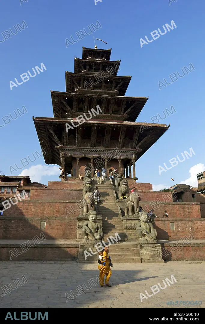 Caption: Nyatapola Temple, built in 1702, tallest temple in Kathmandu valley, Taumadhi Tole square, Bhaktapur, UNESCO World Heritage Site, Nepal, Asia