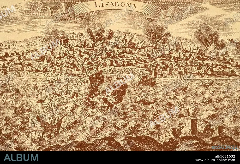Caption: Geology: Earthquake. Description of the terrible earthquake that destroyed Lisbon. (1 November 1755; two thirds of the city are destroye and over 30.000 inhabitants loose their homes). Contemoporary leaflet, Augsburg (Georg Caspar Pfauntz).