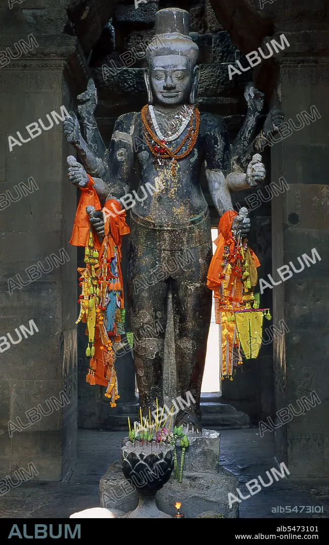 Title: An eight armed Vishnu statue at Angkor Wat.