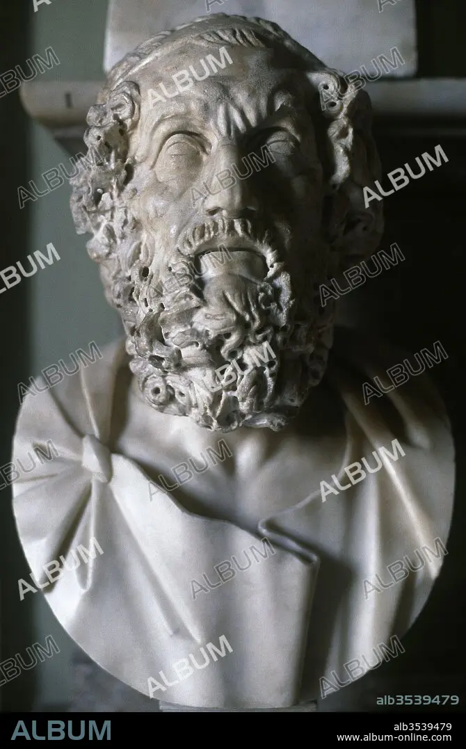 Homer (8th century BC). Greek poet. Roman bust, copy of a Hellenistic original 2nd century BC. Marble. Capitoline Museums. Rome. Italy.