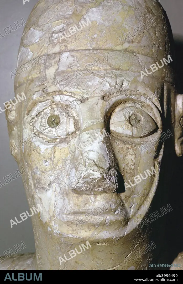 Caption: Head of a statue of Idrimi, a king of Alalakh, Late Bronze Age/Syrian, 16th century BC. An inscription in Babylonian cuneiform script says that he was one of the sons of the royal house of Aleppo, which was subject to the powerful kingdom of Mitanni. The territory of Aleppo included the smaller city state of Alalakh. From the British Museum's collection.