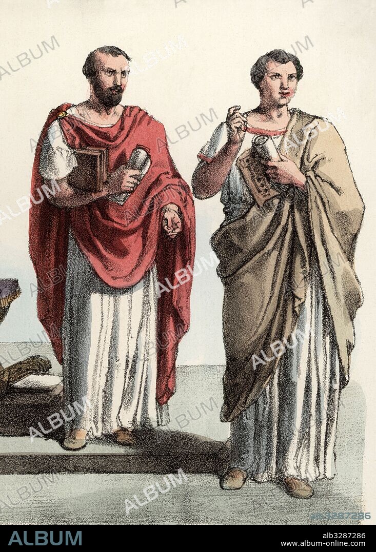Automatic translation: Rome. Old age. Qüestor, magistrate of the Roman Republic who supervised the treasury and finances, and a Roman architect. 1900 engraving