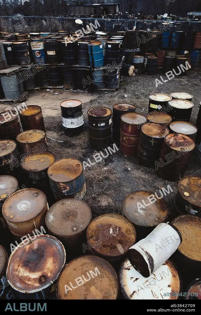 Caption: Barrels of hazardous chemical waste at South Carolina Recycling and Disposal, Inc. (SCRDI) Bluff Road Site, south of Columbia, South Carolina. The site was listed as an EPA Superfund site in 1981, meaning it required long-term clean-up. The property contained about 7,200 drums of toxic, flammable, and reactive wastes, as well as numerous smaller containers, plus two small ponds once used for lime slurry disposal by an acetylene manufacturer. Air, ground water, and surface water were all contaminated.