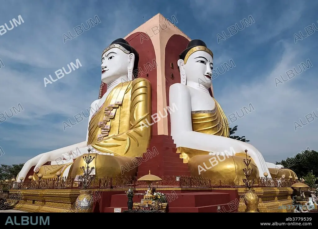 Four Seated Buddha shrine at Kyaikpun Pagoda in Bago, Burma, Myanmar, Asia.