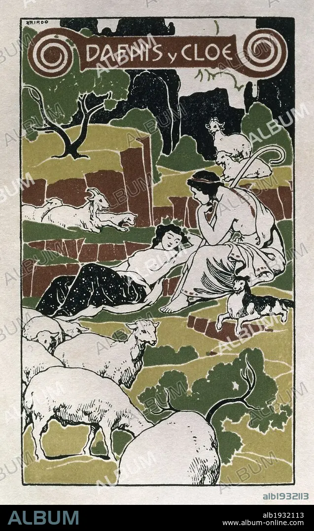 Automatic translation: GREEK LITERATURE. CENTURY III LONGO (lóggos). Greek writer and novelist. "DAPHNIS AND CLOE". Drawing by J. Triadó (1906). Library of Catalonia. Barcelona
