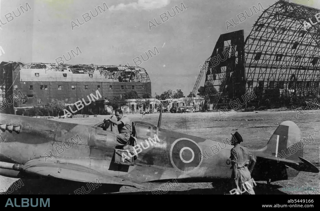 Caption: Air Vice Marshal Harry Broadhurst Inspects Italian Airfield. Photo shows: A.V.M. Harry Broadhurst climbing into his spitfire after the inspection. A.O.C. Desert Air Force, Air Vice Marshal Harry Broadhurst visited Italian Airfields in allied hands. His tour of inspection was made in his own spitfire. December 20, 1943. (Photo by British Official Photo).
