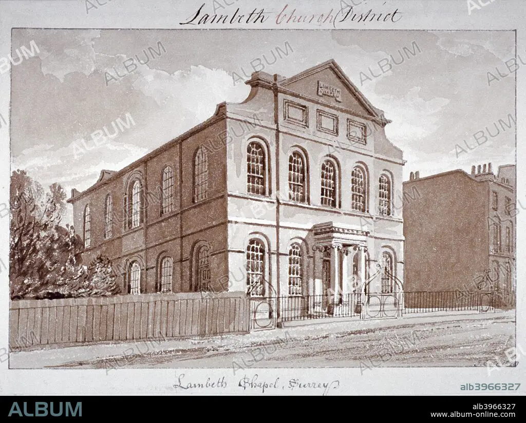Caption: View of a chapel on York Road, Lambeth, London, 1828.