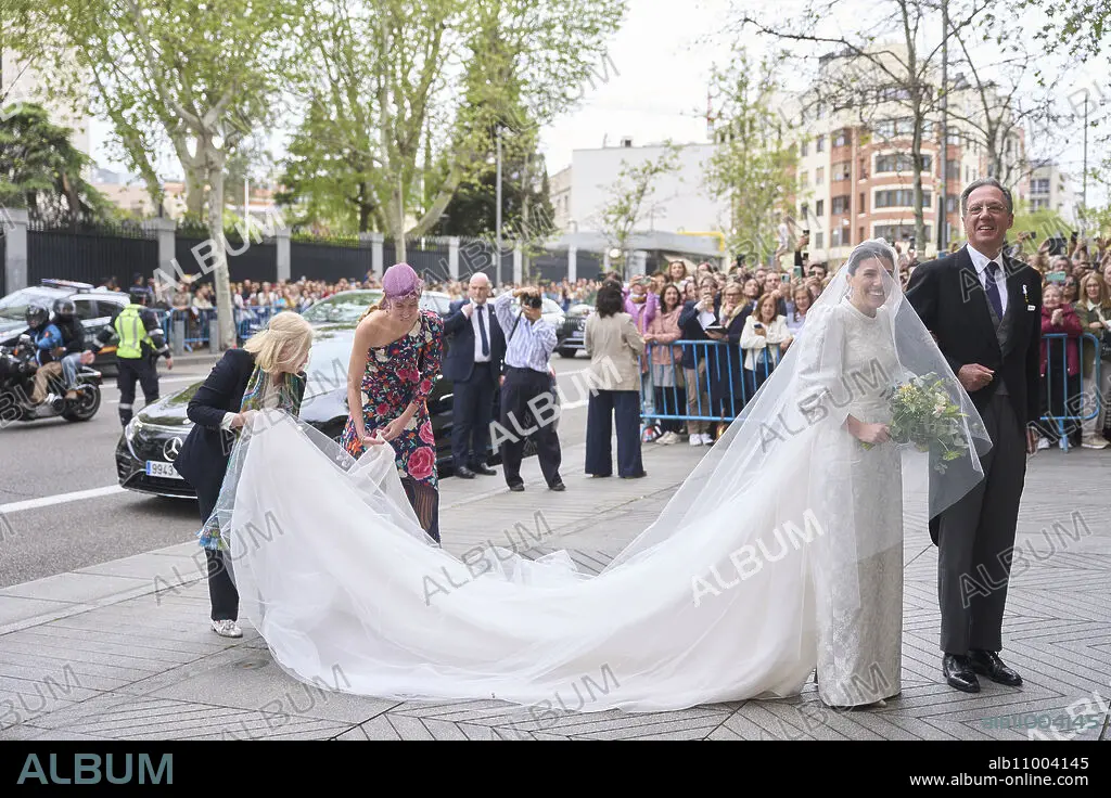 Caption: Teresa Urquijo, Victoria Lopez-Quesada y de Borbon-Dos Sicilias arrives at the wedding of Jose Luis Martinez Almeida, major of Madrid, and Teresa Urquijo at Sagrado Corazon and San Francisco de Borja Church on April 6, 2024 in Madrid, Spain