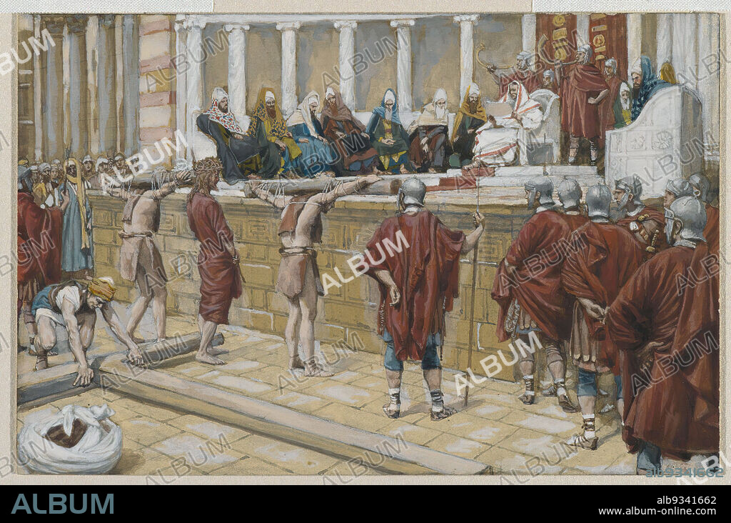 The Judgment on the Gabbatha, Le jugement sur le Gabatha, The Life of Our Lord Jesus Christ, La Vie de Notre-Seigneur Jésus-Christ, James Tissot, French, 1836-1902, Opaque watercolor over graphite on gray wove paper, France, 1886-1894, Image: 5 5/16 x 8 1/16 in., 13.5 x 20.5 cm, ancient, apostles, August, baptize, Beelzebul, bread, Calvary, centurion, Christ, Christianity, Cornelius, cross, dead, death, desert, disciples, Elisabeth, faith, family, gabatha, gabbatha, Galilea, good, Gospel Harmony, helmet, hen, Herodes, holy, horn, james tissot, Jericho, Jerusalem, Jesus, Jesus Christ, John, John 19:13, Judea, judgement, judgement on Gabbath, judgment, jugement, jugement gabatha, leper, life, Life of Christ, Lord, lost, mean, moarning, mountain, New Testament, pagan, passover, Pilate, Pontius Pilate, punishment, pure, Roman, roman soldiers, sabbath, Samaritan, Samaritanian, satan, Saul, see, shepard, sorrow, spirit, Stefanus, thieves, Tissot, toga, trial, tribunal, unbelief, voice, watercolor, well, wheat, wine