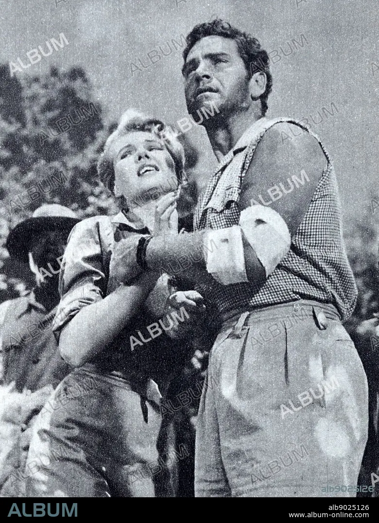 Film still from 'West of Zanzibar' starring Anthony Steel, Sheila Sim, Orlando Martins, and William Simons.