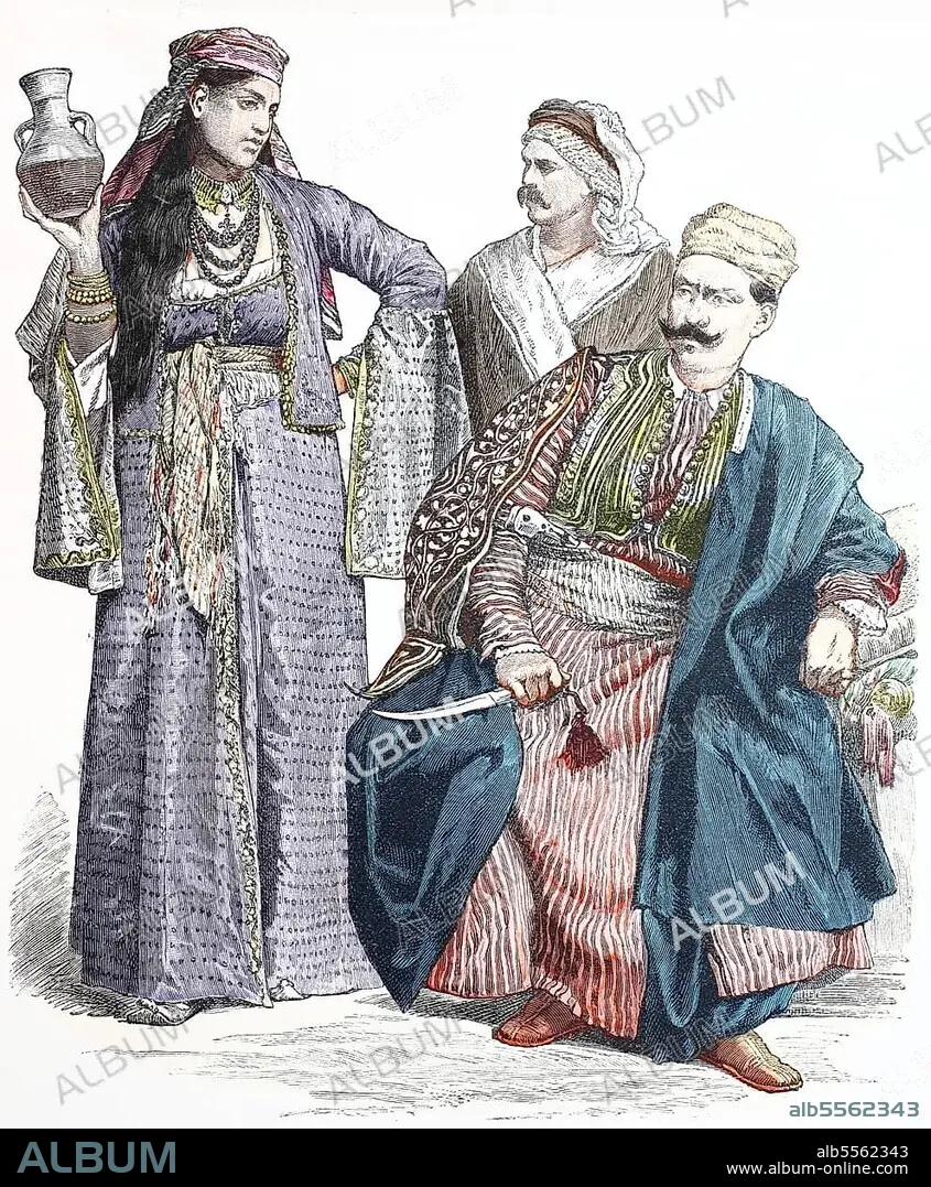 Folk traditional costume, Clothing, History of costumes, Armenian girl, Druse, Inhabitants of Damascus, Historical, Digitally restored reproduction of a 19th century original.